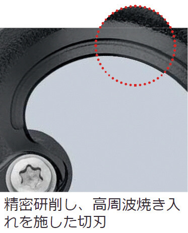 - 切刃は精密研削して高周波焼き入れを施してあるので、つぶれなく、滑らかに、クリアカットします。